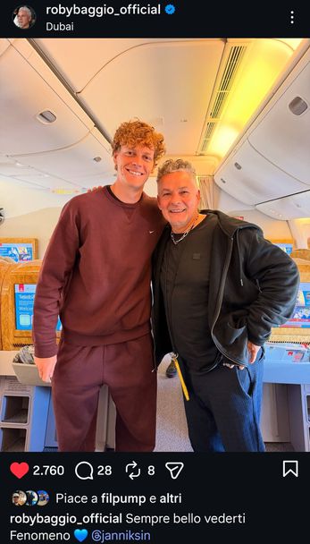 Сбогом, Дубай – време е за връщане у дома. Коледата със семейството е свещена и Яник Синер се завърна в Италия след почти три седмици в Дубай. Изненадата по време на полета беше, че на същия самолет, който кацна от Дубай в Италия, Яник се оказа редом с Роберто Баджо – среща, увековечена със селфи, публикувано в профила на „Червената лисица“. „Божествената опашка“, който се прибираше от Саудитска Арабия след Суперкупата на Италия, никога не е крил възхищението си от шампиона с четири титли от Големия шлем.