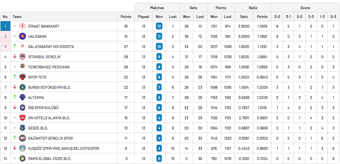 Халкбанк е втори във временното класиране с 31 точки (11 победи, 2 загуби), Истанбул Генчлик е четвърти с 28 точки (9 победи, 4 загуби).