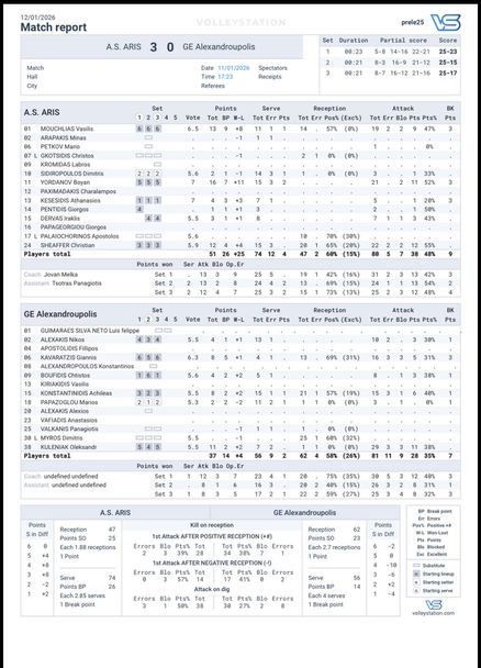 Арис се наложи като гост над Александруполис с 3:0 (25:23, 25:15, 25:17) в мач от 10-ия кръг.