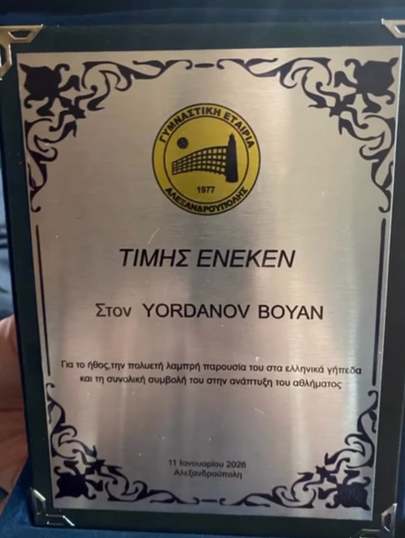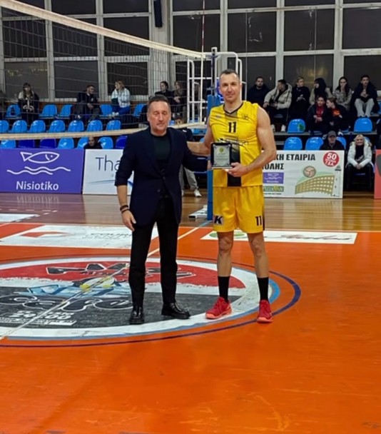 Преди мача домакините изненадаха приятно Супер Бобо и му връчиха специален плакет за развитието на волейбола в Гърция.