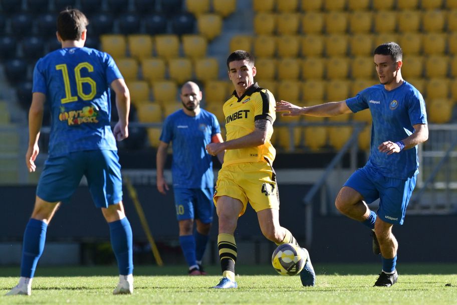 В третата минута Балоянис беше близо до това да си отбележи куриозен автогол в опит да изчисти топката след центриране от десния фланг. Натискът на "жълто-черните" продължи, но футболистите на Димитър Димитров трудно стигаха до нещо по-сериозно пред противниковата врата.