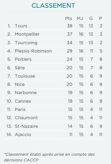 Плеси-Робинсън остана на 4-ото място с актив от 29 точки (11 победи, 5 загуби).