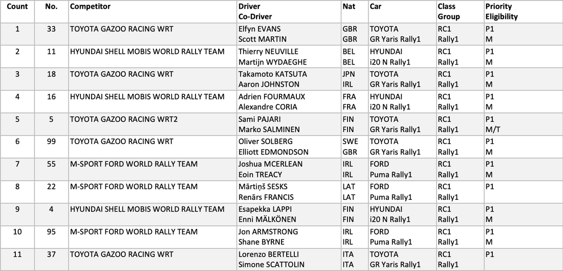 Големият отсъстващ спрямо първия старт за сезона, който ще се проведе следващата седмица в Монте Карло, ще бъде Себастиен Ожие. Световният шампион за поредна година няма да стартира в изцяло снежното рали, което не попада в неговата ограничена програма.