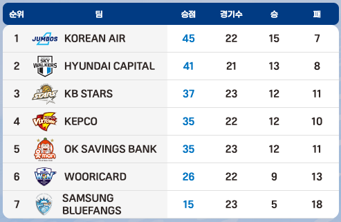ОК Сейвигс Бона Ръш & КешOK (Бусан) е 5-и във временното класиране с актив от 35 точки (12 победи, 11 загуби).