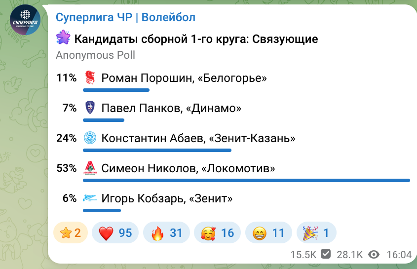 Към този момент Симеон Николов оглавява класацията при разпределителите с 53% от всички гласове, оставяйки зад себе си имена от ранга на Константин Абаев - Зенит (Казан) и Павел Панков - Динамо (Москва).