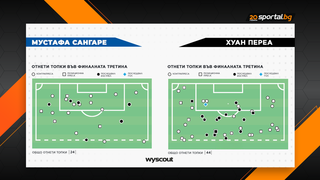 Цифрите показват, че Мустафа Сангаре остава по-директната голова заплаха за Левски. Хуан Переа обаче би донесъл нещо различно – изключителна мобилност и агресия при пресирането на противника още в неговата половина. При евентуален трансфер, „сините“ биха разполагали с два коренно различни профила в атака, което би направило отбора много по-непредвидим.