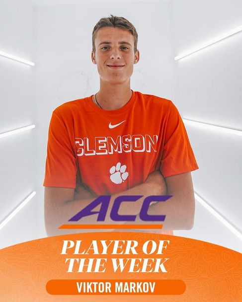 Конференцията на Атлантическото крайбрежие (ACC) обяви своите седмични награди по тенис, като Виктор Марков от университета Клемсън беше избран за Играч на седмицата за представянето си по време на ITA Kickoff Weekend.