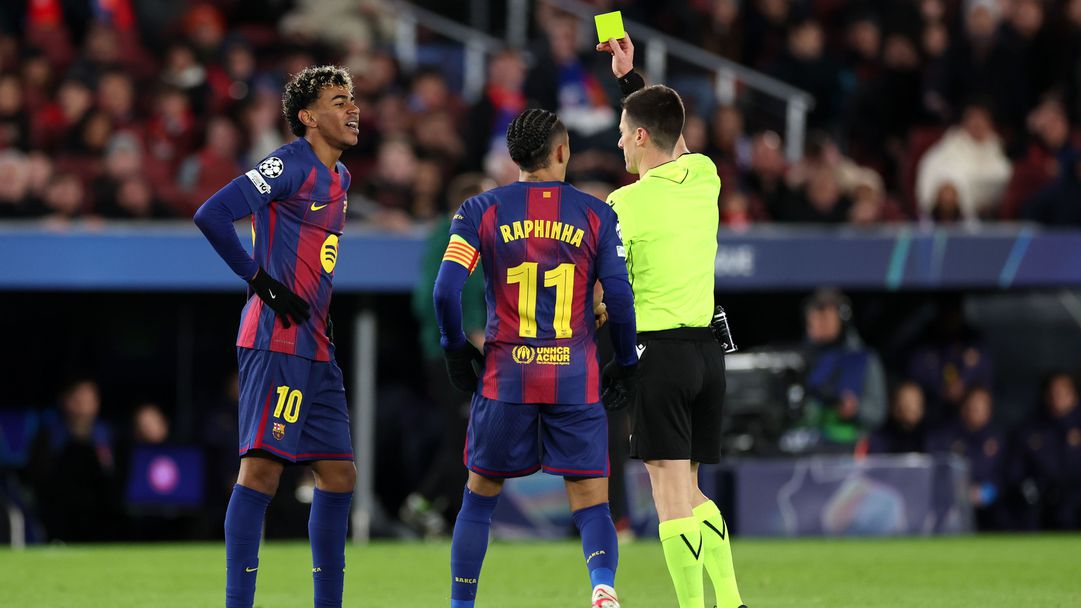 Това можеше да им изиграе лоша шега, тъй като в 34-тата минута Гарсия отправи бомбен шут в напречната греда, а при добавката Левандовски отклони в аут. При удара в гредата играч на гостите отклони топката с глава, което изглежда му създаде неприятности и той се строполи на тревата веднага след това. Ламин Ямал от своя страна буквално нападна Беноа Бастиен и го засипа с канонада от словесен огън и жупел, търсейки му сметка защо не поднови играта. Разбира се, подобно неспортсменско поведение нямаше как да бъде по вкуса на френския рефер, който реагира и показа жълт картон на испанския талант. Това обаче не бе всичко по отношение на официалните предупреждения и до края на полувремето Бастиен оцвети в „жълто“ още един футболист на терена, като това бе Сузуки от гостите заради грубо нарушение. Нещо, което бе и част от тактиката на датчаните, които се затвориха и до почивката се отбраняваха грамотно, като дори в добавеното време Ларсон застраши още веднъж вратата, пазена от Жоан Гарсия, и по този начин преднината бе съхранена след 45 минути игра.