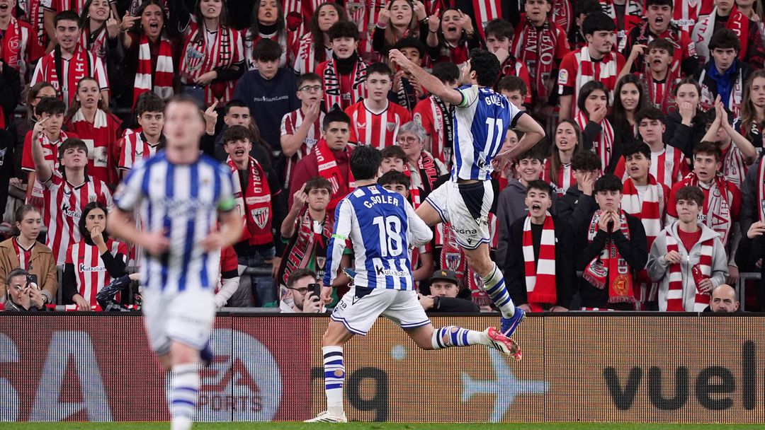 С човек повече Атлетик загради съперника и голът не закъсня. В 88-ата минута Де Галарета премина като на слалом между няколко защитници на Реал Сосиедад и заби топката в далечния ъгъл на вратата за 1:1. Домакините дори можеха да направят пълен обрат, но Алекс Ремиро парира силен изстрел на Паредес.