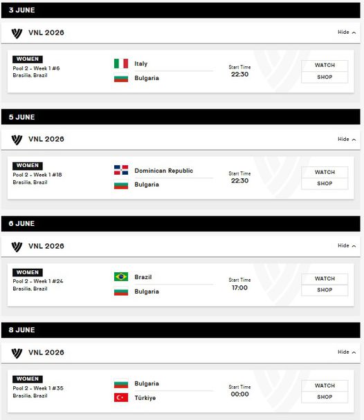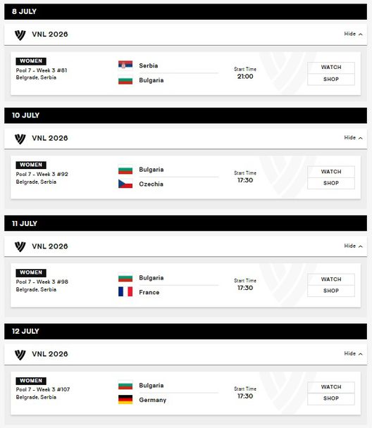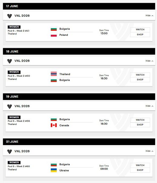 Пълна програма на България във Волейболната Лига на нациите 2026 при жените: