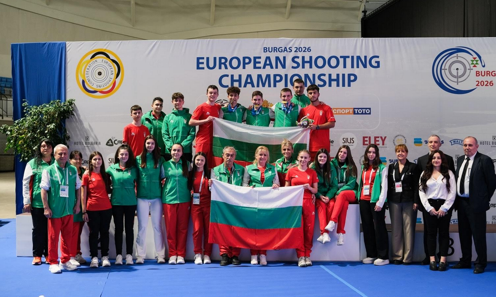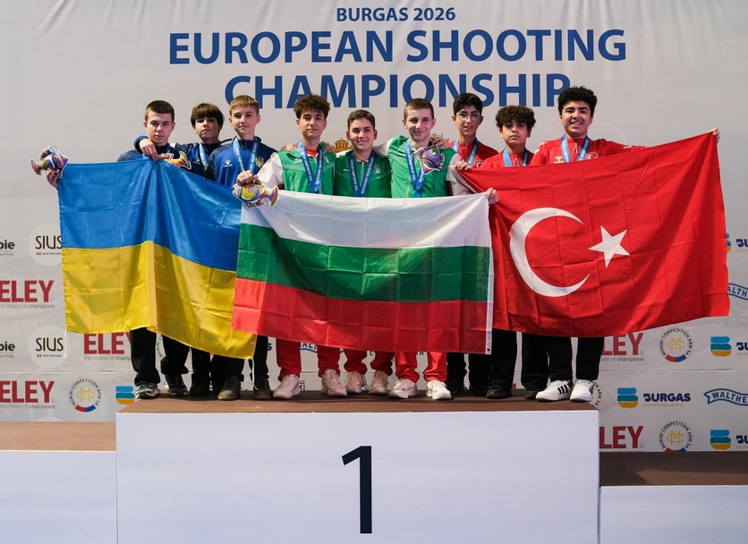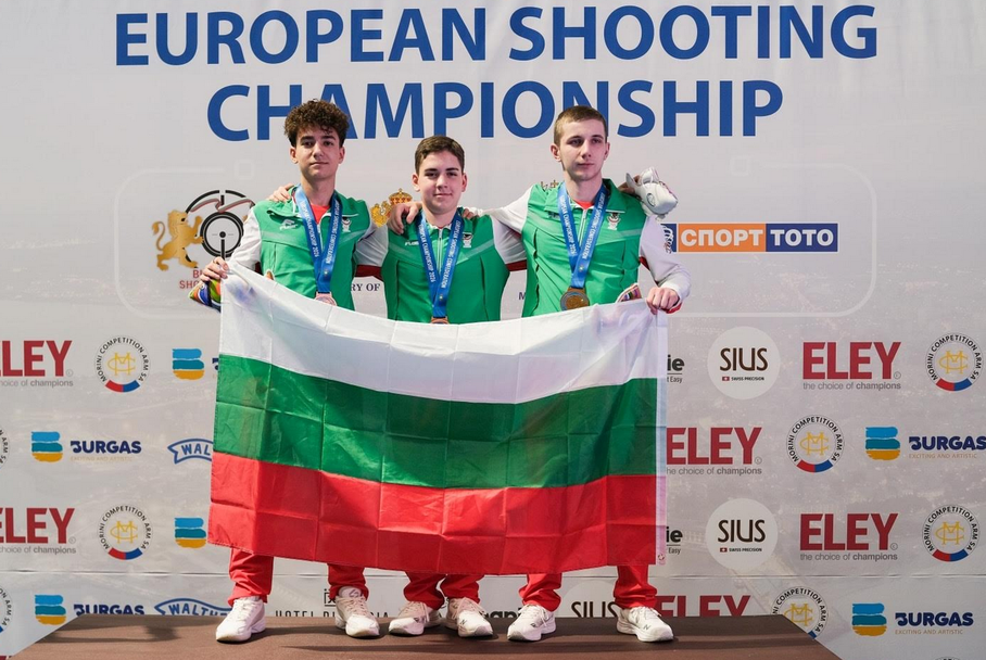 България дублира европейската титла по спортна стрелба до 16 години на пистолет отборно в тази възрастова група след Талин (Естония) миналата година. За нея на континенталния шампионат по спортна стрелба с въздушно оръжие за младежи, юноши и девойки в Бургас се пребориха Борис Димитров, Даниел Делчевски и Калоян Петков.