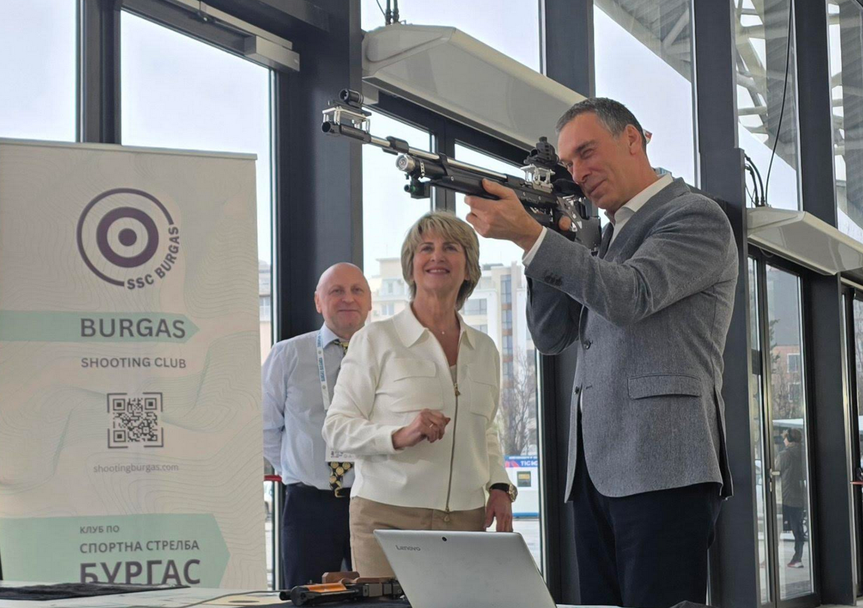 Председателят на Българския стрелкови съюз и вицепрезидент на Европейската конфедерация по стрелба Весела Лечева даде урок по спортна стрелба и запозна с тънкостите на спорта си кмета на Бургас Димитър Николов. Той стреля с въздушна пушка и въздушен пистолет, след което изгледа финала на 10 м въздушна пушка микс до 21 г. от Европейското първенство в морския град в компанията на Лечева и президента на Европейската конфедерация по стрелба Александър Ратнер. Николов награди медалистите в дисциплината.