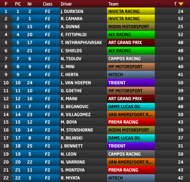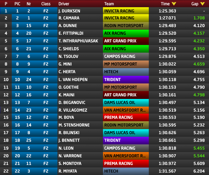 В тях най-активен със своите 58 обиколки беше индиецът Куш Майни, а с пет по-малко на втората позиция остана Цолов. Бразилците Рафаел Камара и Емерсон Фитипалди направиха по 52, а освен тях поне 50 тура завъртяха още Лорън ван Хьопенм, Рафаел Виягомес и съотборникът на Цолов в Кампос Ноел Леон.