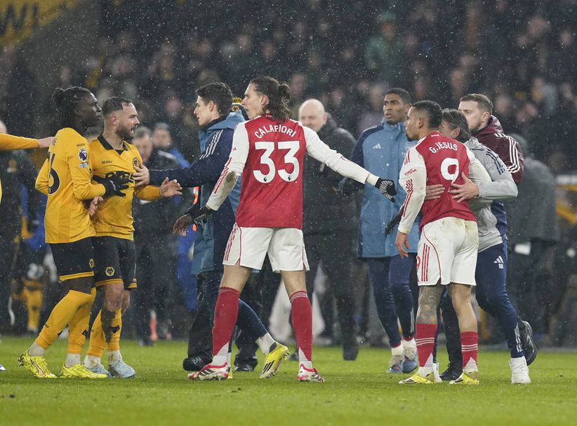 Футболистите на Арсенал - вероятно ядосани от пропусната победа над Уулвърхамптън - изпуснаха нервите си в края на изтегления мач от 31-вия кръг на Премиър лийг. “Топчиите” водеха с 2:0 на последния в класирането, но допуснаха изравняване, с което си тръгнаха само с една точка.