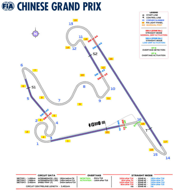 От Международната автомобилна федерация (ФИА) обявиха четирите зони, в които пилоти ще могат да използват активната аеродинамика на своите коли по време на предстоящата този уикенд Гран При на Китай. Както беше в Австралия миналата седмица, така и сега част от зоните ще дублират DRS зоните от последните години, макар и с корекции в тяхната дължина.
