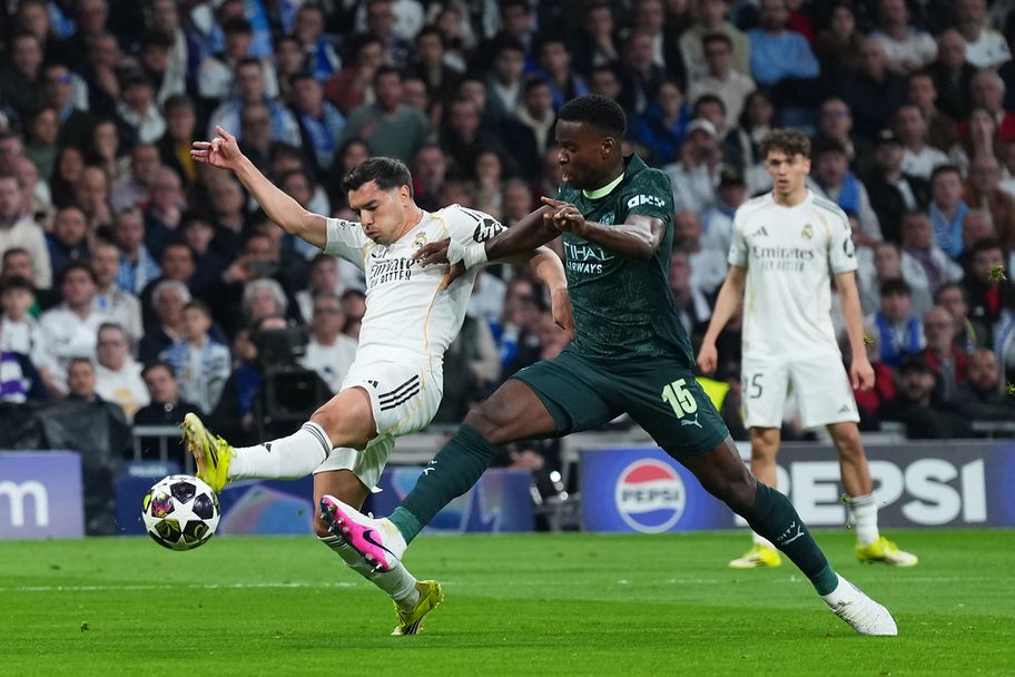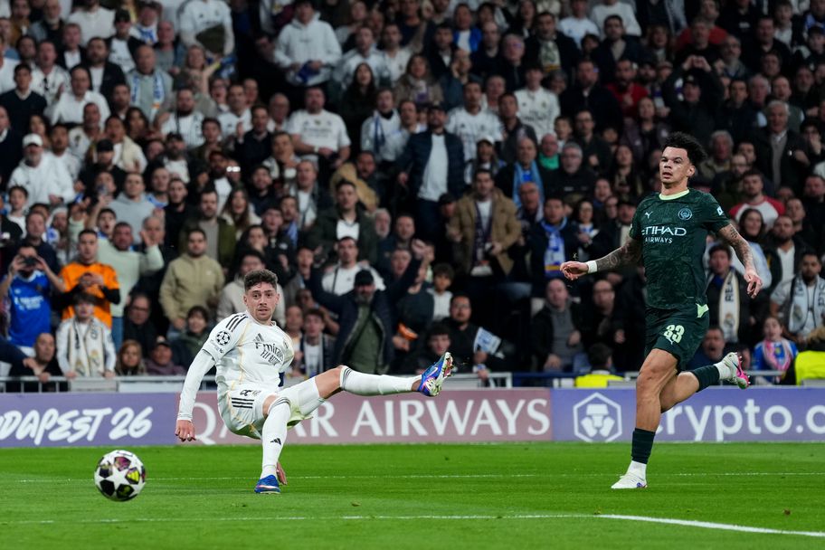 С изумителен хеттрик на Федерико Валверде (20’,27’,42’) тимът на Реал Мадрид срази Манчестър Сити с 3:0 като домакин в първа среща от осминафиналите в Шампионската лига и направи огромна крачка към следващия етап. Винисиус Жуниор пропусна да реши всичко още на “Бернабеу”, тъй като в 57-ата минута Донарума спаси изпълнена от него дузпа. Реваншът в Англия е следващия вторник. На четвъртфиналите победителят от тази двойка на 99.9% ще спори с Байерн (Мюнхен), който има преднина от 6:1 над Аталанта.