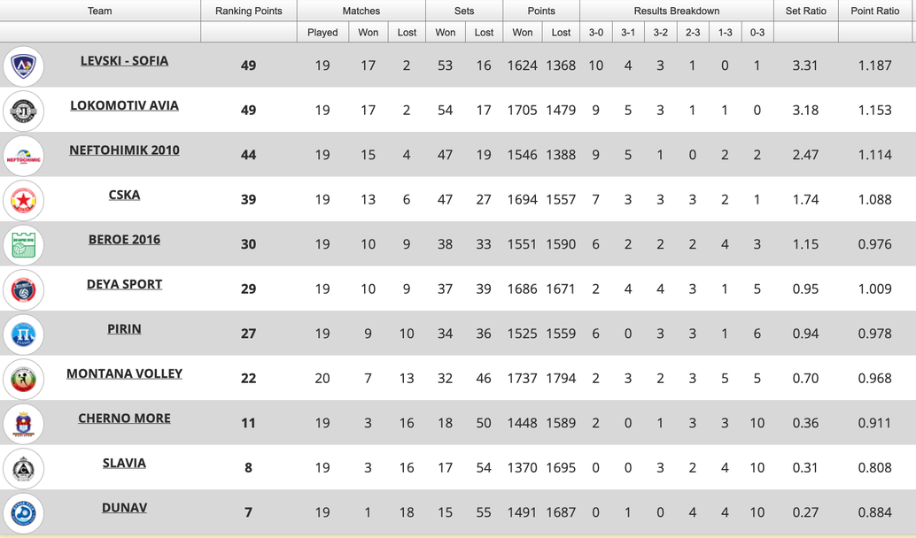 Така двата тима си запазват местата във временното класиране. Разложани са 7-и с 9 победи, 10 загуби и 27 точки, а Черно море е на 9-а позиция с 3 победи, 16 загуби и 11 точки.