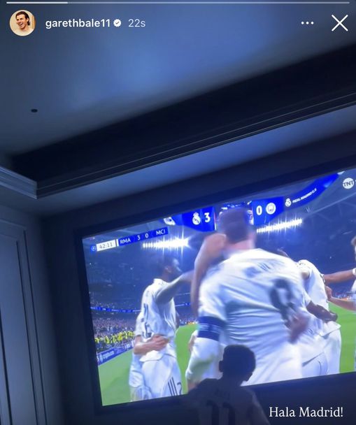 Бившата звезда на тима Гарет Бейл също публикува в социалните мрежи как е гледал мача вкъщи заедно със своя син Аксел, облечен във фланелка именно на Реал Мадрид.