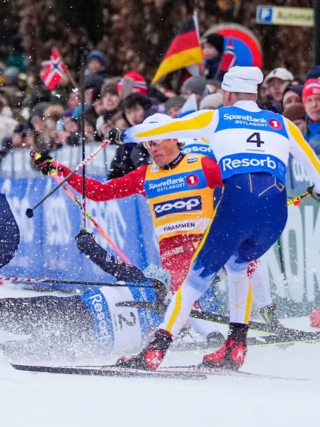 Легендата в ски-бягането Йоханес Клаебо е получил сътресение на мозъка след падането по време на спринтовата надпревара от Световната купа в Драмен, Норвегия.