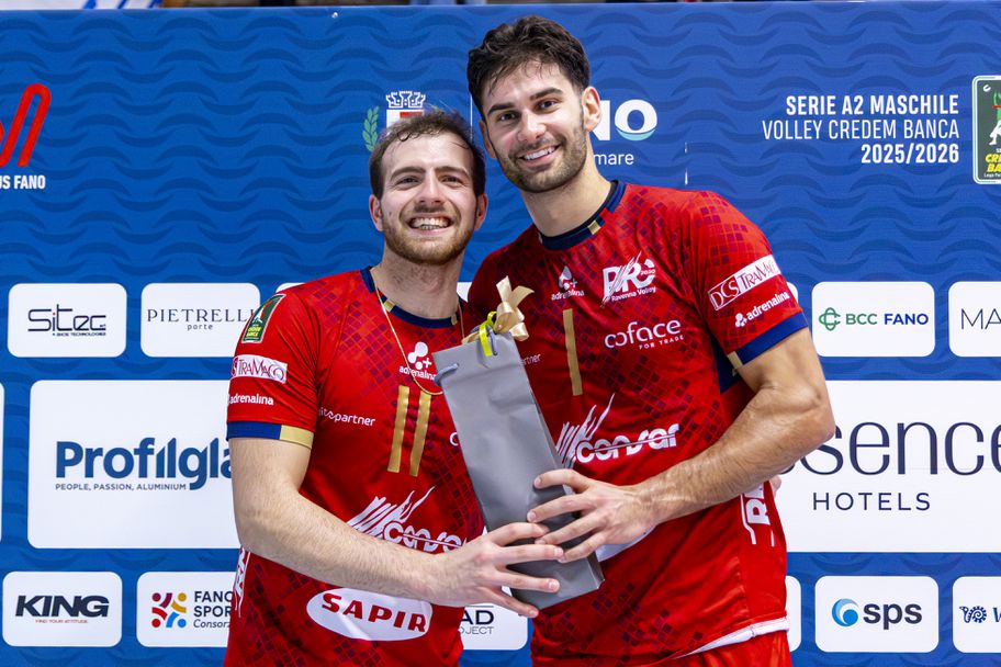 Националите Християн Димитров и Самуил Вълчинов и техният Консар Равена записаха 17-а победа във второто ниво на италианското първенство - Серия А2. Воденият от Антонио Валентини тим надделя над Есенс Хотелс Фано с 3:2 (26:28, 25:23, 25:23, 24:26, 15:10) в двубой от 25-и кръг.