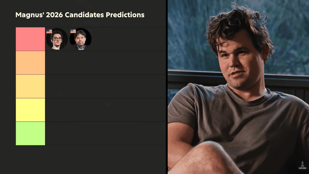 Каруана реши да не оценява самия себе си и постави Накамура и Прагнанандхаа в най-високата категория. Накамура беше единственият от четиримата участници, който сложи самия себе си в най-горното ниво, но като Каруана и той посочи Праг като фаворит от най-висока класа.