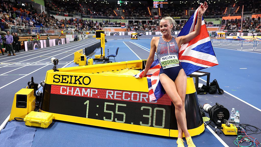 Ходжкинсън, която е привърженик на Манчестър Юнайтед, спечели първата си световна титла на 800 метра в зала по убедителен начин в Полша миналата седмица.