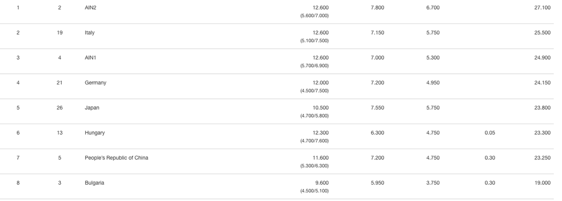 Във финала на три обръча и два чифта бухалки нашите останаха на последната осма позиция след много грешки. Възпитаничките на старши треньора Весела Димитрова получиха за изпълнението си едва 19.00 точки (9.600, 5.950, 3.750). Тук титлата стана притежание на ансамбъла на Русия, който спечели пред отборите на Италия и Беларус. Беларускините също се състезават под неутрален флаг.