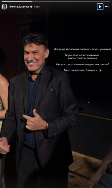 “Искам да те запомня завинаги така - усмихнат. Борислава носи твоето име… и носи твоята светлина. И всеки път, когато я погледна, виждам теб. Ти оставаш с нас. Завинаги”, написа Лозанова.