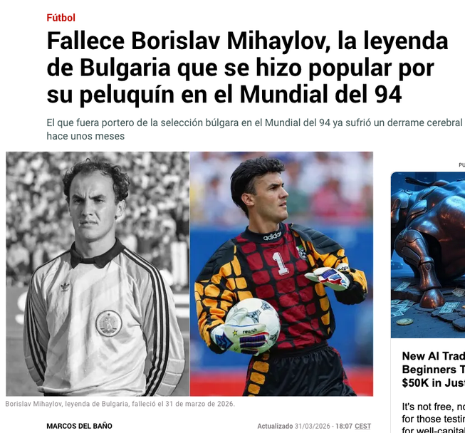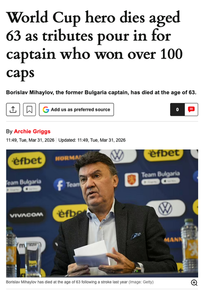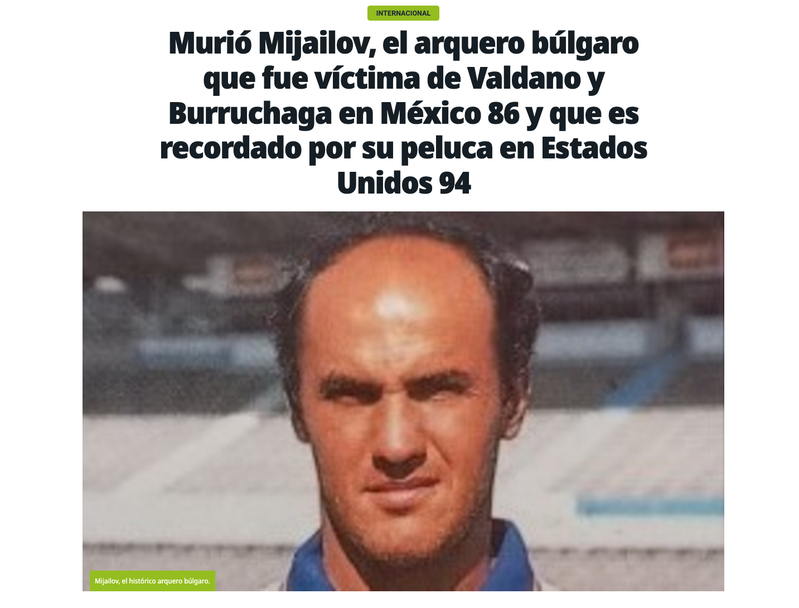 “Михайлов - българският вратар, който стана жертва на Валдано и Буручага в Мексико 86 почина”, напомня аржентинският “Ole” за срещата между България и гаучосите на Мондиала през 1986, но тактично забравят срещата между двата тима през 1994-а.