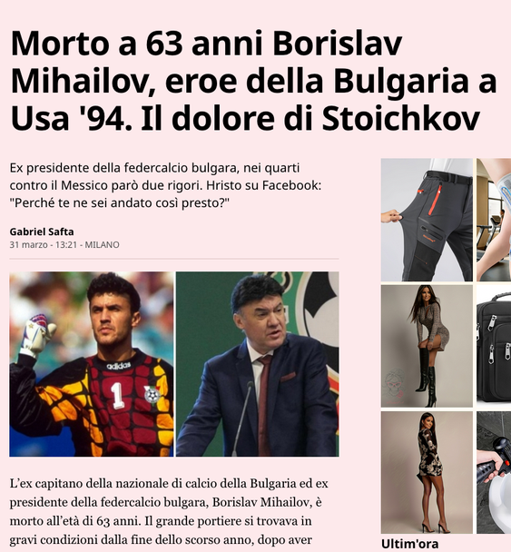 "Героят на България от САЩ 94 Борислав Михайлов почина на 63. Скръбта на Стоичков", отбелязва "Gazzetta dello Sport"