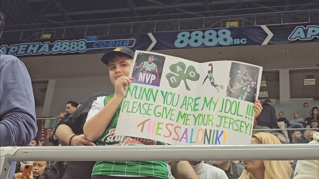 Малък фен на Панатинайкос се появи в "Арена София" с интересен плакат, за да подкрепи любимците си срещу Апоел Тел Авив тази вечер. На държания от момченцето плакат се вижда изображение на френския център на ПАО Матиа Лесор и надпис, чрез който малкият фен се обръща към играча с молбата да му подари фланелката си.