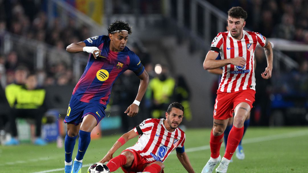 Ламин Ямал вдигна публиката на крака със зрелищен рейд между трима защитници на съперника, но ударът му беше блокиран. Атлетико не получаваше много възможности да атакува, а при една от редките такива топката беше пренесена до десния фланг, но Джулиано Симеоне центрира изключително неточно.