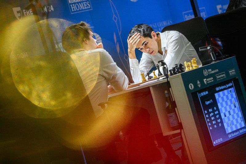 Победата на Гири стана още по-важна, след като Синдаров пропусна шанс да се приближи още повече до крайната цел. Преди партията узбекът би бил доволен на реми с черните, особено като има белите фигури в три от оставащите пет партии, но начинът, по който се разви двубоят, го превърна в разочарование, което трябва бързо да забрави.