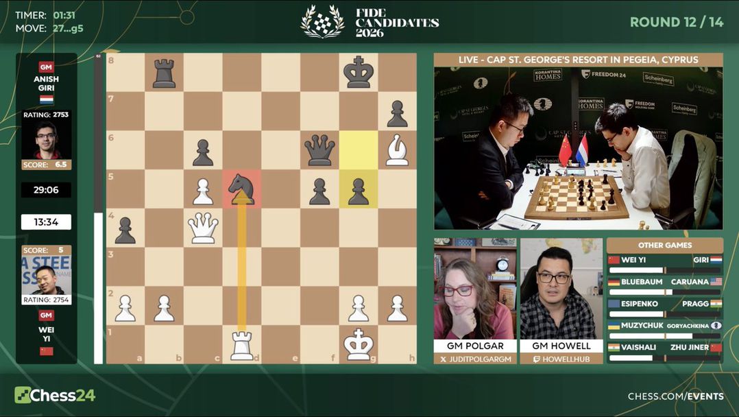 Ремито на Синдаров означаваше, че Гири трябва задължително да победи Уей И, за да запази реални шансове. Победа щеше да намали разликата до 1.5 точки, но китаецът се измъкна.