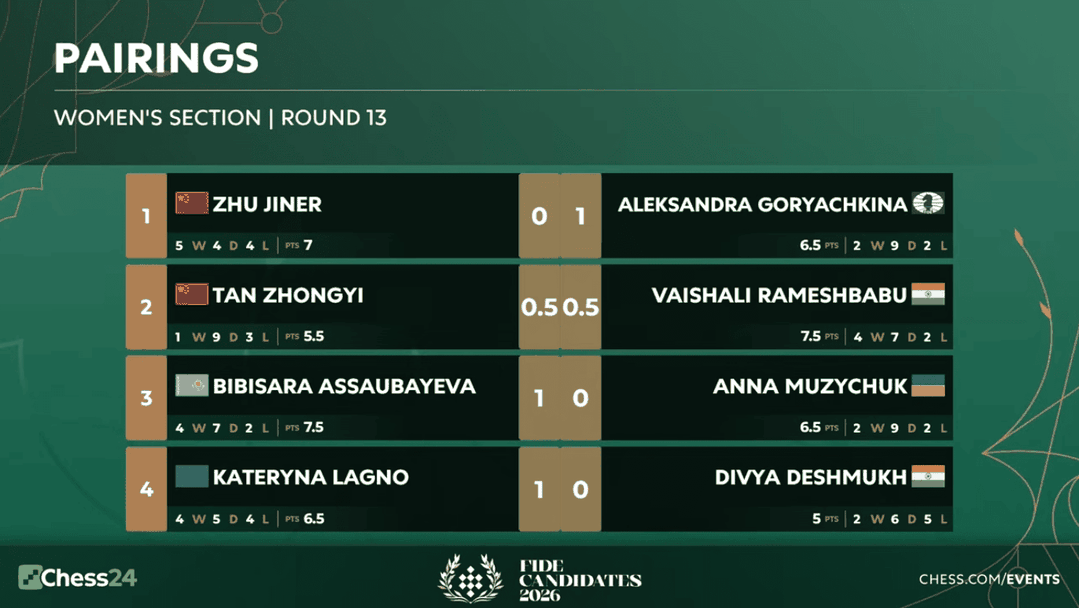 Така, докато претендентът срещу Гукеш вече е ясен, въпросът кой ще се изправи срещу гросмайстор Дзю Уендзюн остава напълно отворен, особено след като лидерите не се срещат помежду си в последния кръг.