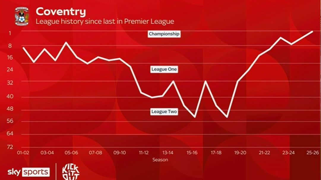 Що се отнася до Ковънтри, клубът едва за втори път в историята си се изкачва в първа дивизия, като единственият му досегашен престой там продължи 34 последователни години: от 1967-а до 2001-ва. Впоследствие настъпи продължителен спад за отбора, довел дори до изпадане в четвъртото ниво на английския футбол през сезон 2016/17. Това обаче се оказа повратната точка, тъй като оттогава насам последва постепенно завръщане към елита, включващо две промоции и един загубен финален плейоф за елита от Лутън след дузпи през 2022/23, за да се стигне до настоящата историческа кампания.