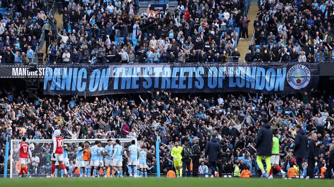 Микел Артета обикаляше и утешаваше съкрушените си играчи на Арсенал, когато пред него на „Етихад Стейдиъм“ беше разгънат огромен банер с надпис: „Паника по улиците на Лондон“.