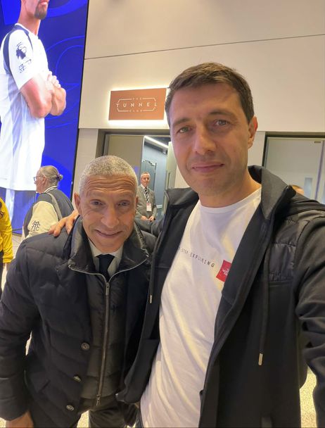 "Берба, надявам се, че си добре! Тотнъм страда през този сезон, въпреки че на моменти играе прилично. Липсват ни твоите голови умения", сподели бившият селекционер на Гана. През годините Крис Хютън винаги е коментирал отличните впечатления, които е оставил голмайстор №1 на българския национален отбор на "Уайт Харт Лейн". Евтимов се засече и с друга легенда на "шпорите" Ледли Кинг, на когото подари традиционната брандирана торбичка на България с родни сувенири.