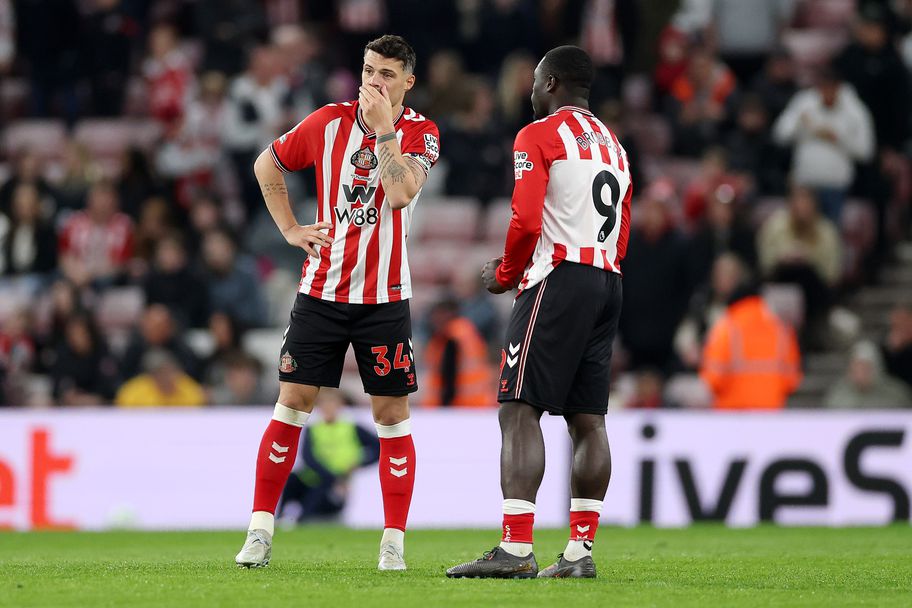 Първото полувреме беше катастрофално за Съндърланд. Тимът допусна 4 гола, а част от феновете не дочакаха почивката и напуснаха "Стейдиъм ъф Кайт". В 17-ата минута Трей Хюм си отбеляза автогол, след като топката се отклони от него и влезе във вратата, пазена от Робин Рьофс. Четвърт час по-късно стражът на домакиите допусна груба грешка, а Крис Ууд се възползва от паса на Морган Гибс-Уайт и показа, че постепенно навлиза във форма след контузията.