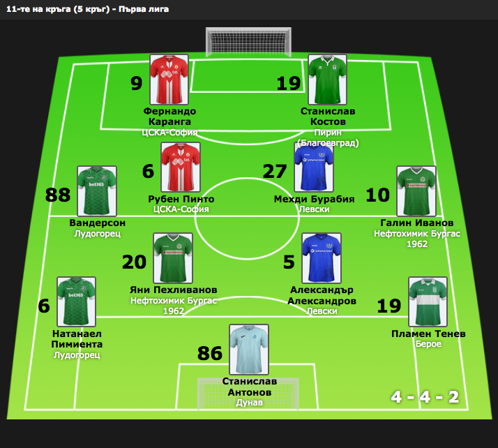 - Мехди Бурабия (Левски) - XVI, XVII, XIX, XXV, IV (II), V (II)