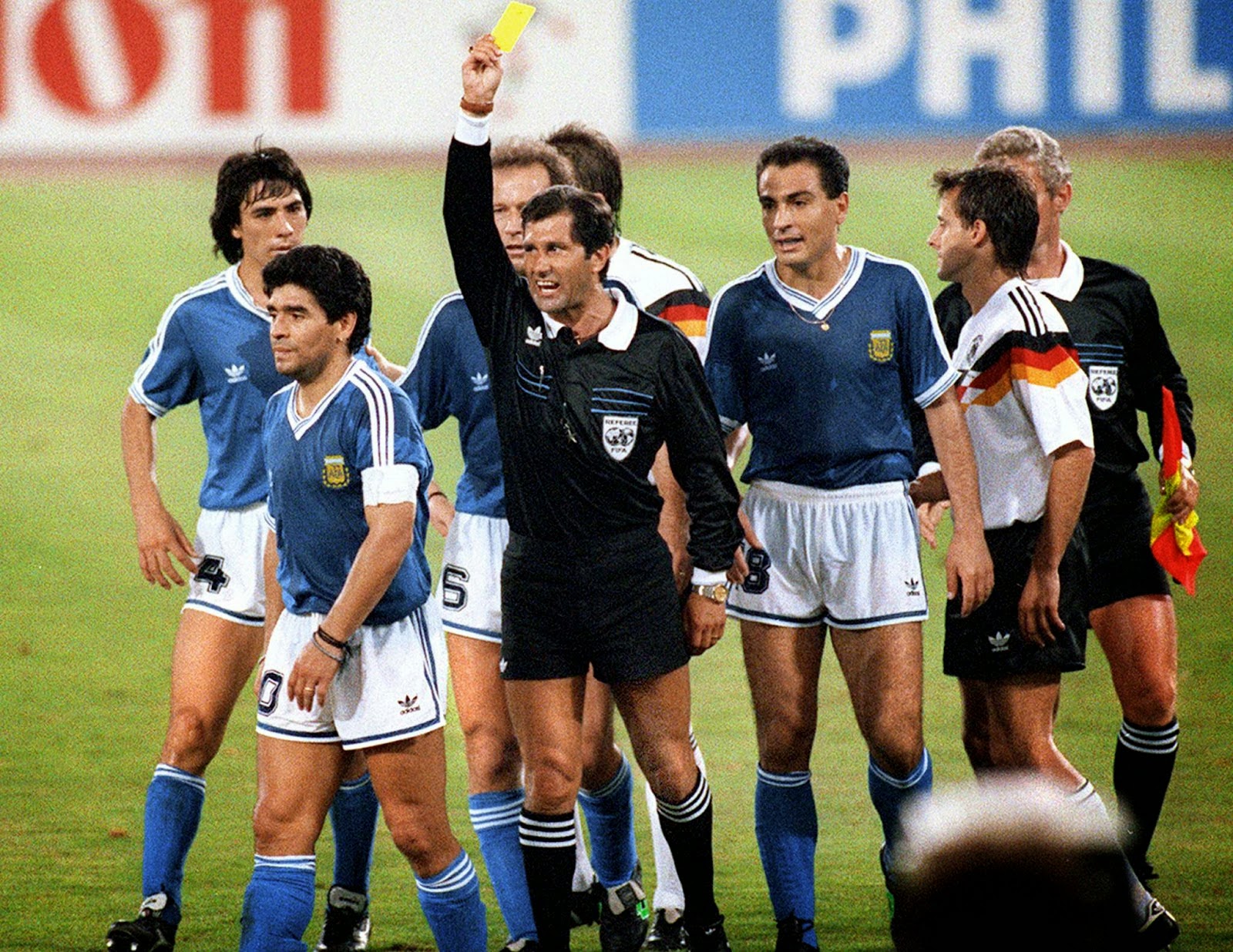 Много спорна дузпа, реализирана от Андреас Бреме, носи световната титла на германците, а след финала Диего плаче като малко дете. Той не подава ръка на президента на ФИФА Жоао Хавеланж при награждаването и продължава да плаче със сребърния медал на гърди. През есента на 1990 година Марадона отказва да играе в демонстративния мач в Милано по случай 50-годишнината на Пеле. Така стигаме до 17 март 1991-а. Бари приема Наполи в среща от италианския шампионат. Мач като мач, но не само. Допинговата проба на Златното момче се оказва положителна и той изхвърча от футбола. Покрай този скандал в Италия започва кампания против Марадона – летят обвинения срещу него за какво ли не: употреба на наркотици, връзки с мафията и пр. Това е краят на кариерата на славния аржентинец на Ботуша.