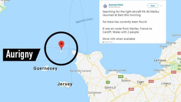 Малкият самолет с играча Емилиано Сала на борда е изгубил връзка с граничните власти на Англия на около 700 метра надморска височина. Полицията на Гернси - остров в Ла Манша в близост до Нормандия - потвърди, че от летателния апарат е получено искане за разрешение за кацане, докато той е бил на около 1500 метра. След като го е получил, е започнало снижаване, но след това нещо се е случило.